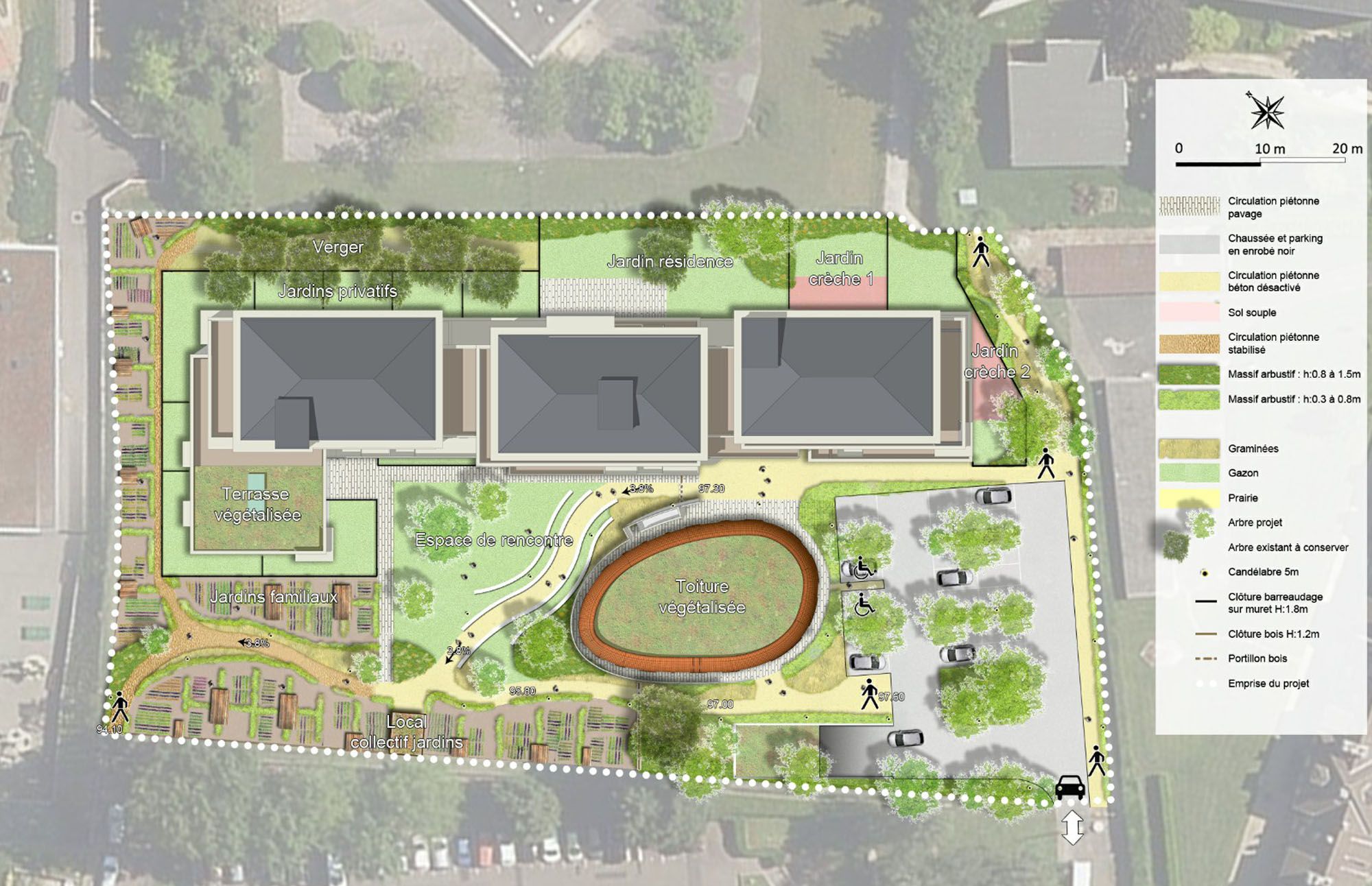 - L’organisation des espaces extérieurs sous le prisme de la facilité des déplacements piétons (lisibilité et identification des cheminements, respect des normes d’accessibilité PMR, confort de circulation de jour comme de nuit…)